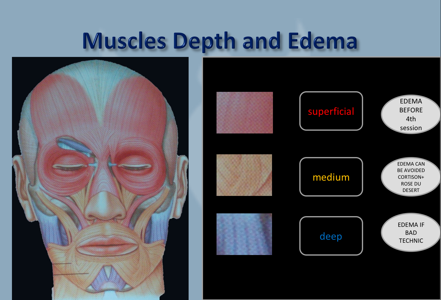 - Only from 4th session and only if you are well trained, you can treat the superficial muscles like the frontal as the upper third of the face.
